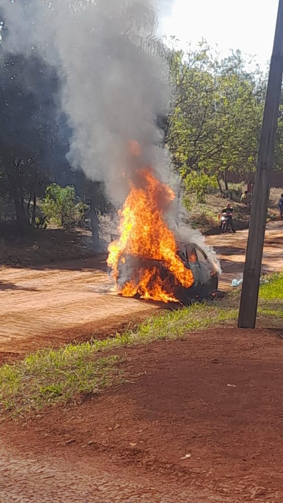 Este martes al mediodรญa, un automรณvil Toyota Corolla Runx color negro terminรณ envuelto en llamas en una calle sin nombre del barrio 13 de Junio en Hernandarias. El vehรญculo era propiedad de Verรณnica Yanis Benรญtez Sosa, de 28 aรฑos, quien por fortuna saliรณ ilesa del siniestro.