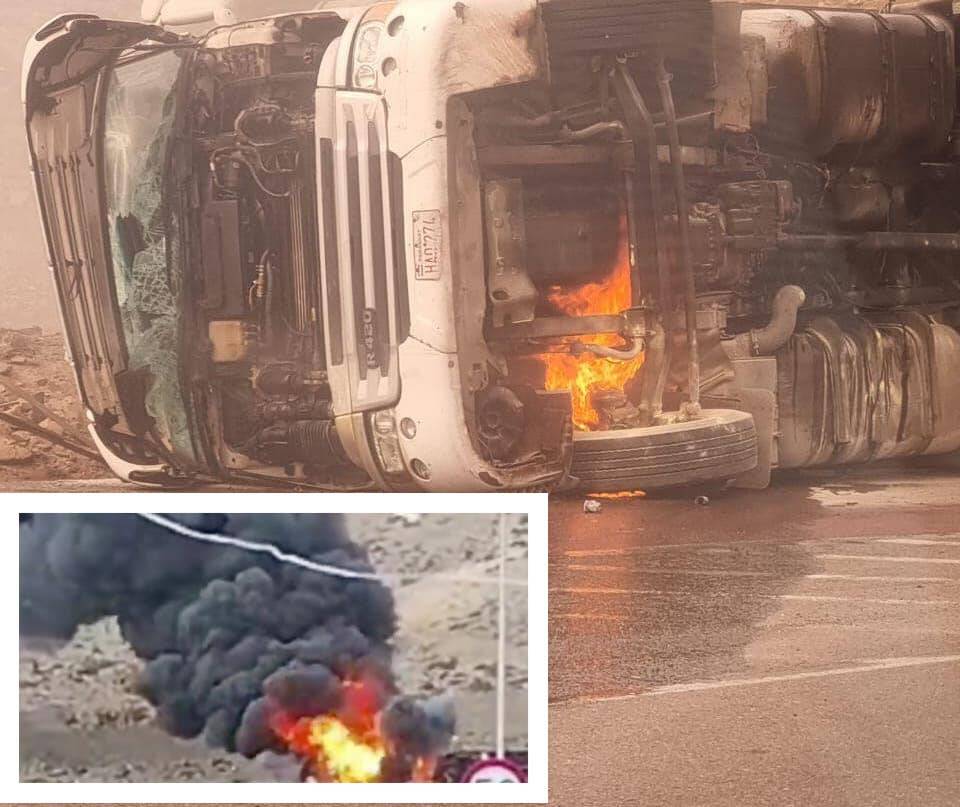 en un lugar que se conoce como Cuesta Paposo, un camión de gran porte volcó sobre uno de sus lados y poco