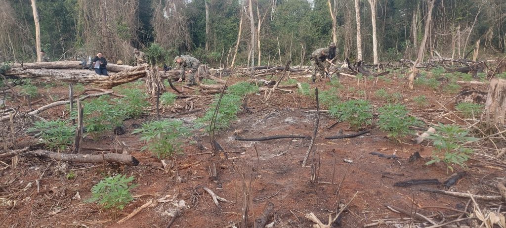 Durante el operativo fueron localizadas dos parcelas con cultivos ilícitos, que totalizaban aproximadamente 5 hectáreas de marihuana. La plantación fue completamente erradicada y destruida en el lugar conforme a lo dispuesto por el Ministerio Público.