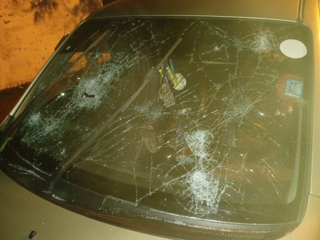 La víctima refirió que se encontraba en la cancha en compañía de sus hijos menores, ínterin en que llegó al lugar el sindicado y le reclamó su presencia en el lugar procediendo a romper todos los vidrios de su automóvil, marca Toyota, modelo Funcargo, color dorado, chapa N° AAL489 y agredió físicamente a la víctima, posteriormente huyó del lugar.