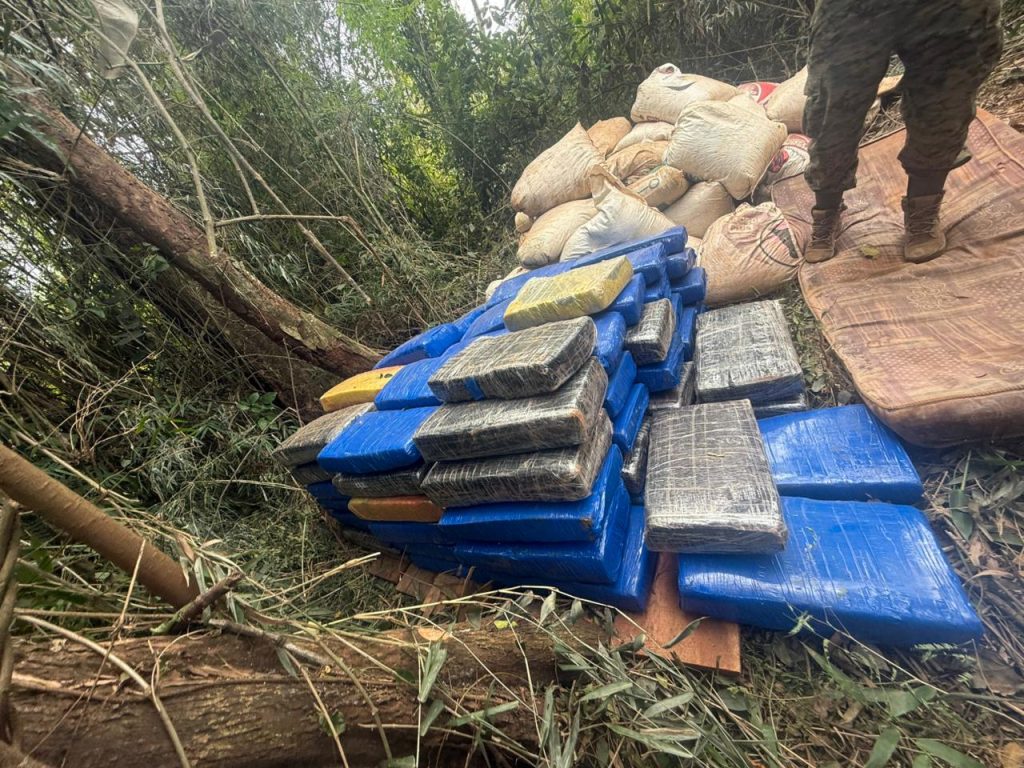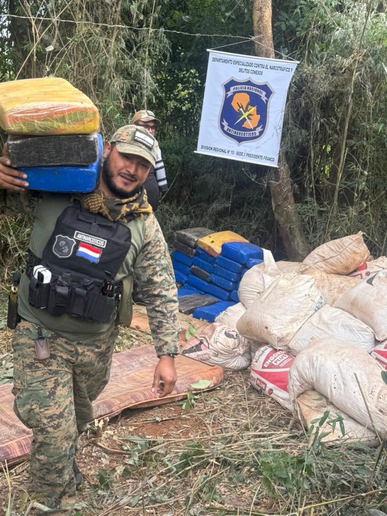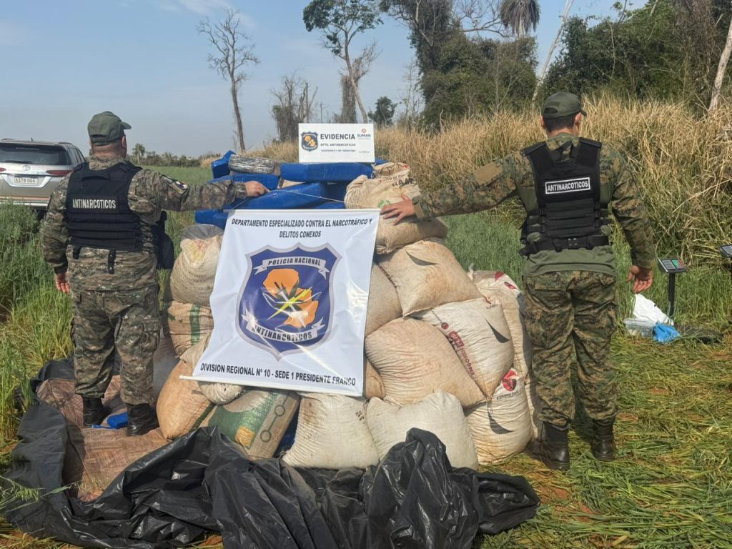 Un operativo contra el narcotráfico se realizó ayer en la colonia Chino Cué, de Itakyry. La intervención se llevó a cabo en un inmueble rural. Los agentes hallaron 1.050 kilos de marihuana prensada en 93 paquetes rectangulares y 450 kilos de la droga picada en 41 bolsas de arpillera. La carga estaba oculta en un depósito y se presume que tenía como destino el mercado brasileño. No hubo detenidos, aunque los investigadores sospechan que el lugar funcionaba como centro de acopio de una red criminal. El fiscal Manuel Rojas, ordenó el traslado de la droga para su pesaje y posterior destrucción.