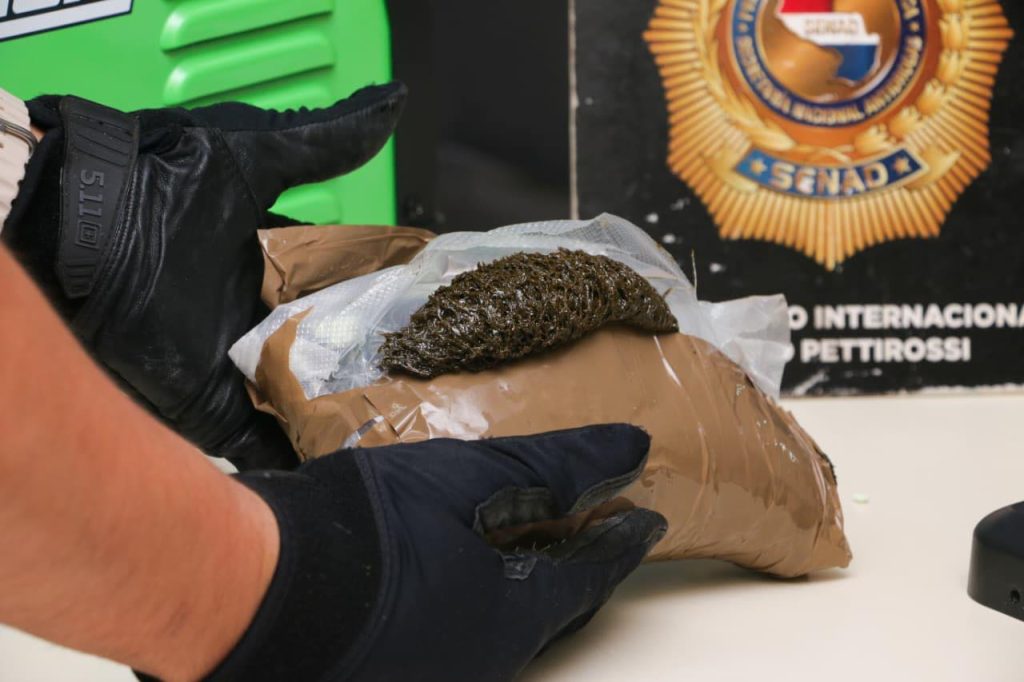 Ambos paquetes fueron interceptados por agentes de la Secretaría Nacional Antidrogas, con apoyo de canes detectores de drogas y en coordinación con funcionarios de la DNIT en el Aeropuerto Internacional Silvio Pettirossi.