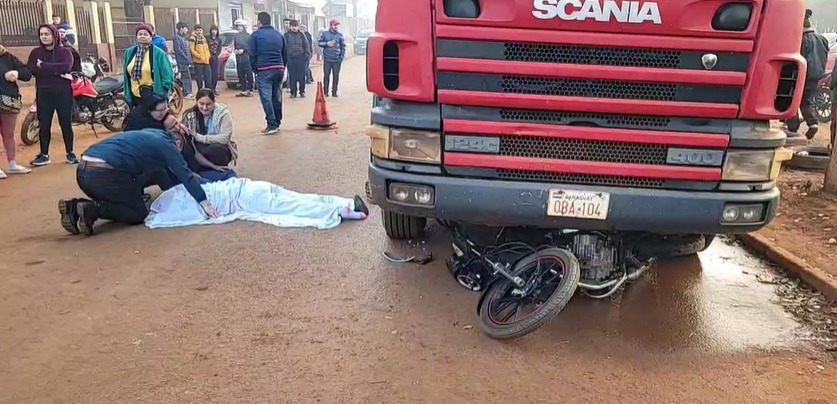Un percance que involucró a un camión tumba y a una motocicleta dejó como saldo una joven muerta, que según los familiares era aspirante a policía. Ocurrió a tempranas horas de este martes sobre la Av. Carlos Barreto Sarubbi del Km 10 Acaray de Ciudad del Este.